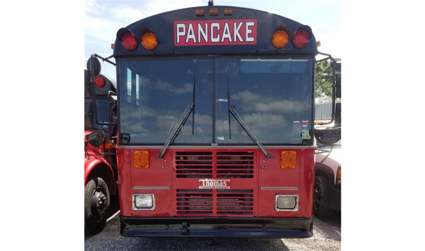 Bus Pancake holds up to 60 passengers, High Ceiling(6.5+) for the tall, Bluetooth (wireless), and usb stereo system, "15 L7 Subwoofers(nice bass) with the 5way 6x9 interface speakers giving you all the mid & highs you need to enjoy every song, LED dome party lights, 120V charging outlet, Two red poles, black leather & red ostrich custom seating, black carpet, ice cooler pockets, very spacious, a/c.